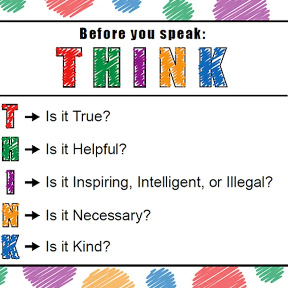 Think: Before sharing or posting anything online, think about its potential impact and whether it aligns with your values. Consider if it is accurate, appropriate, and respectful.